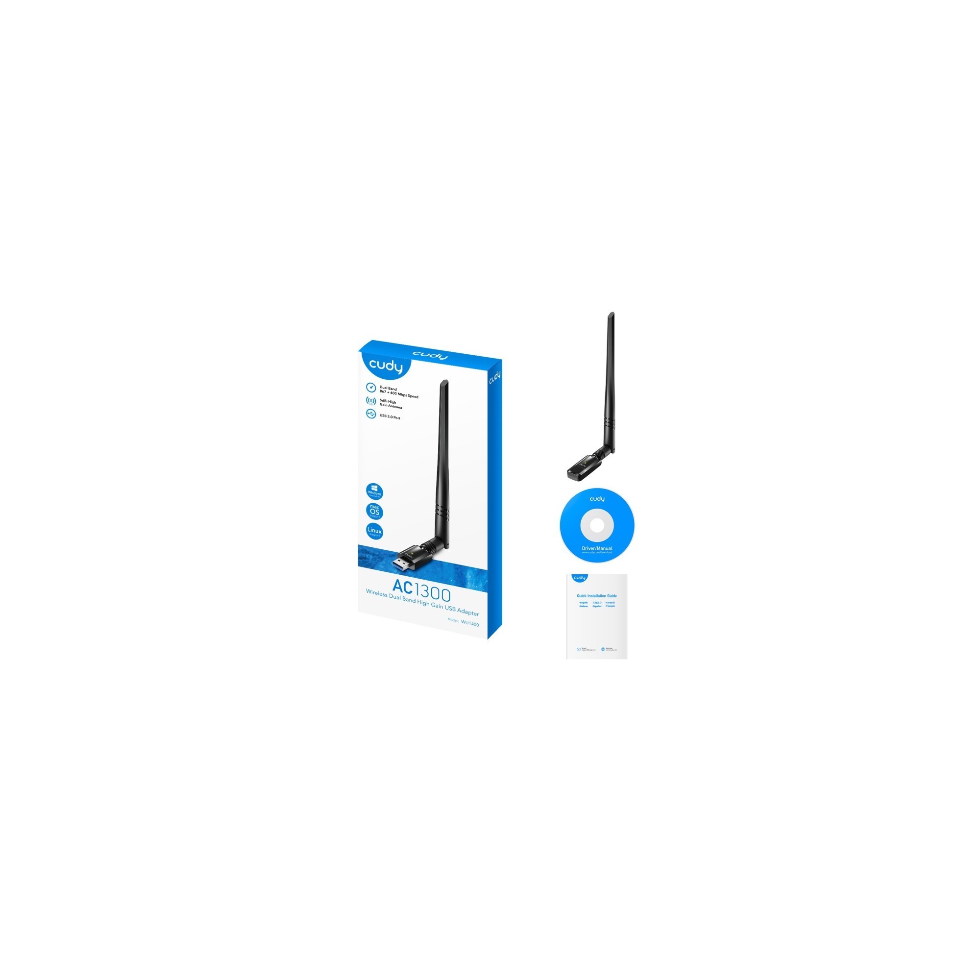 CUDY ADAPTADOR WI-FI USB 3.0 AC1300 MBPS Wireless AC Dual Band
